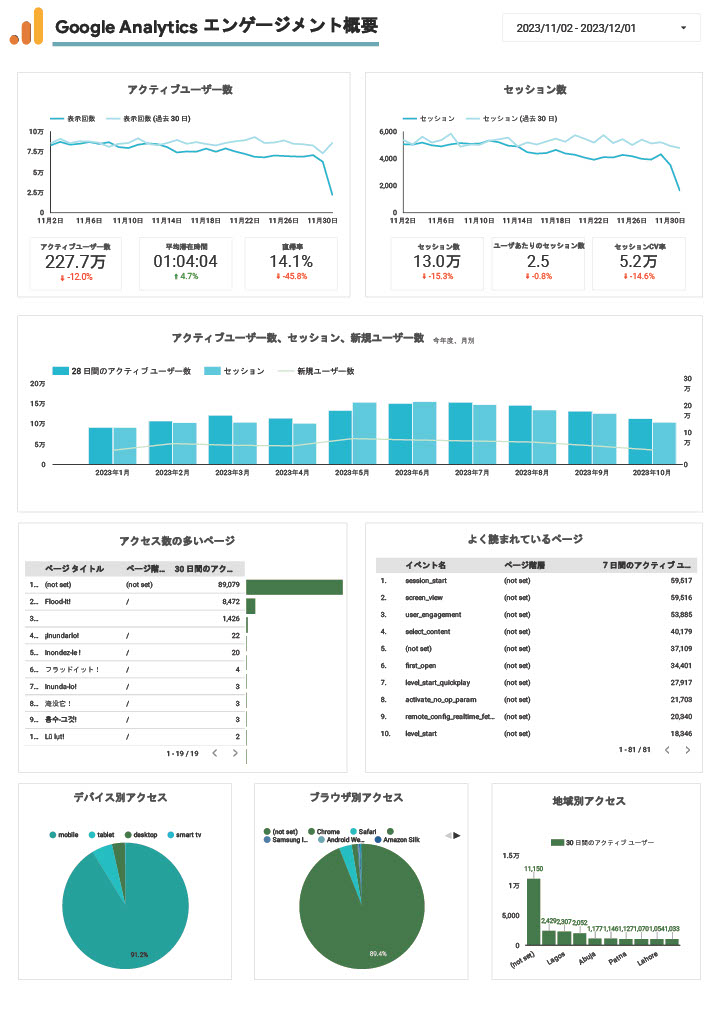 以下はGoogle Looker Studioを利用した、Googleデモアカウントの解析結果です。