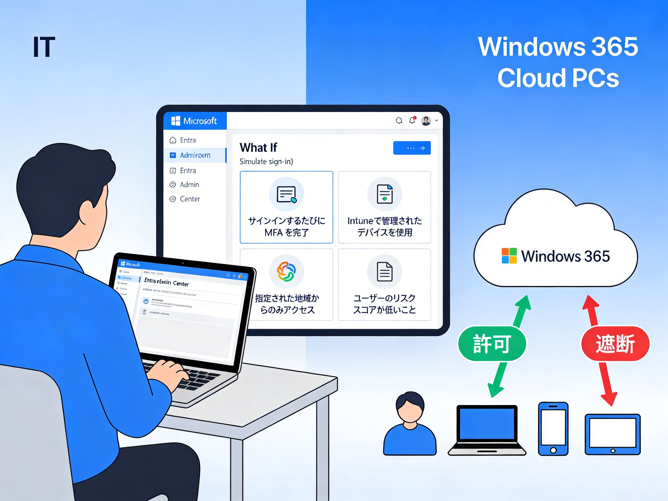 ある組織では、クラウド PC 環境(Windows 365)を条件付きアクセスで保護しています。
