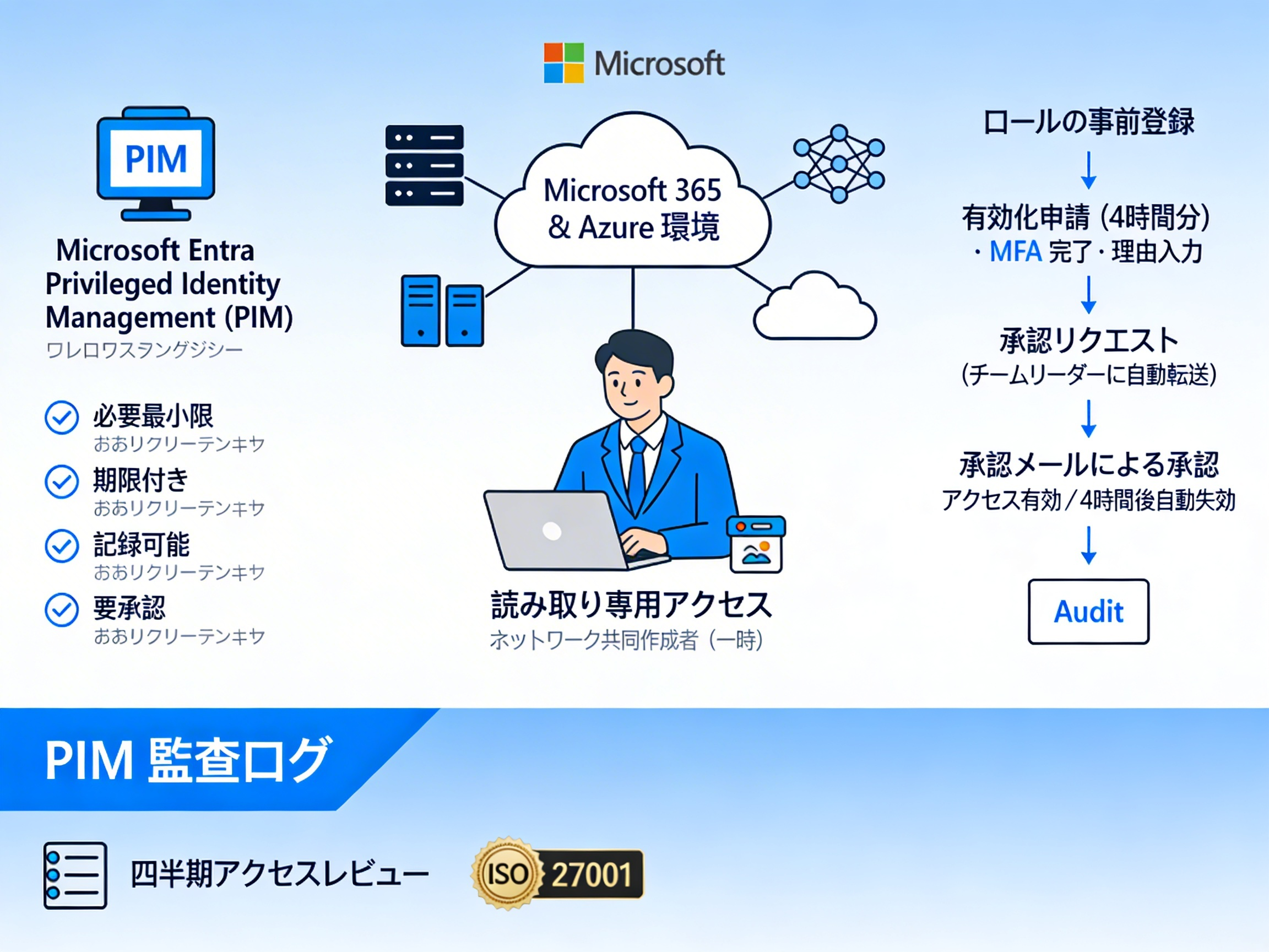 PIM とは、管理者権限のような強力な権限を「必要なときだけ・一時的に」与える仕組みです。